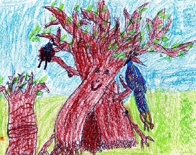 A legelvontabb alkotást Horváth Loretta (10 éves) küldte Tiszaújvárosból. A fát álmában látta meg megperzselődve. |